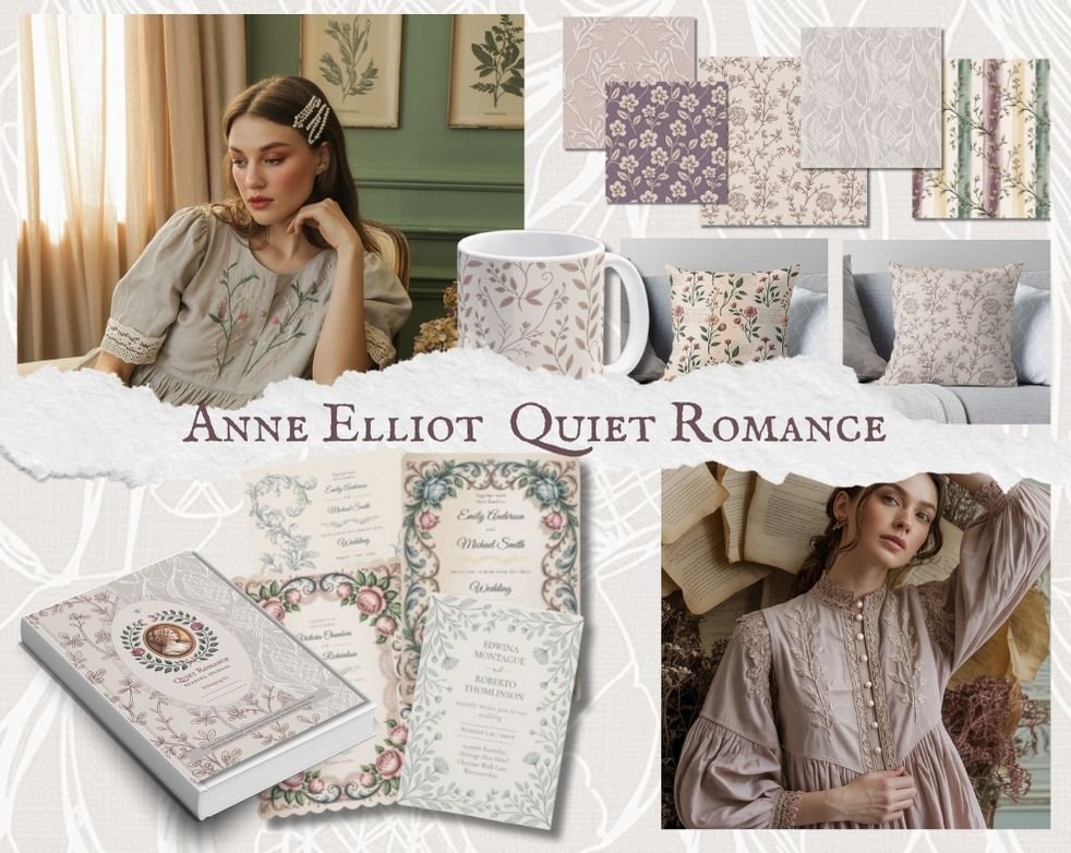 Inspired by the timeless grace of Austen’s heroines and the soft poetry of everyday beauty, the Anne Elliot Quiet Romance Collection celebrates the art of subtlety. From journals and invitations to décor and fashion, every item has been thoughtfully designed or hand-selected to invite calm, tenderness, and reflection into your space.